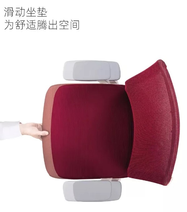 隱藏式腰靠調節機制,保留座椅簡約、時尚的外觀,通過上下推拉改變座椅腰部支撐點,滿足不同體型用戶對腰部承托力度的需要。